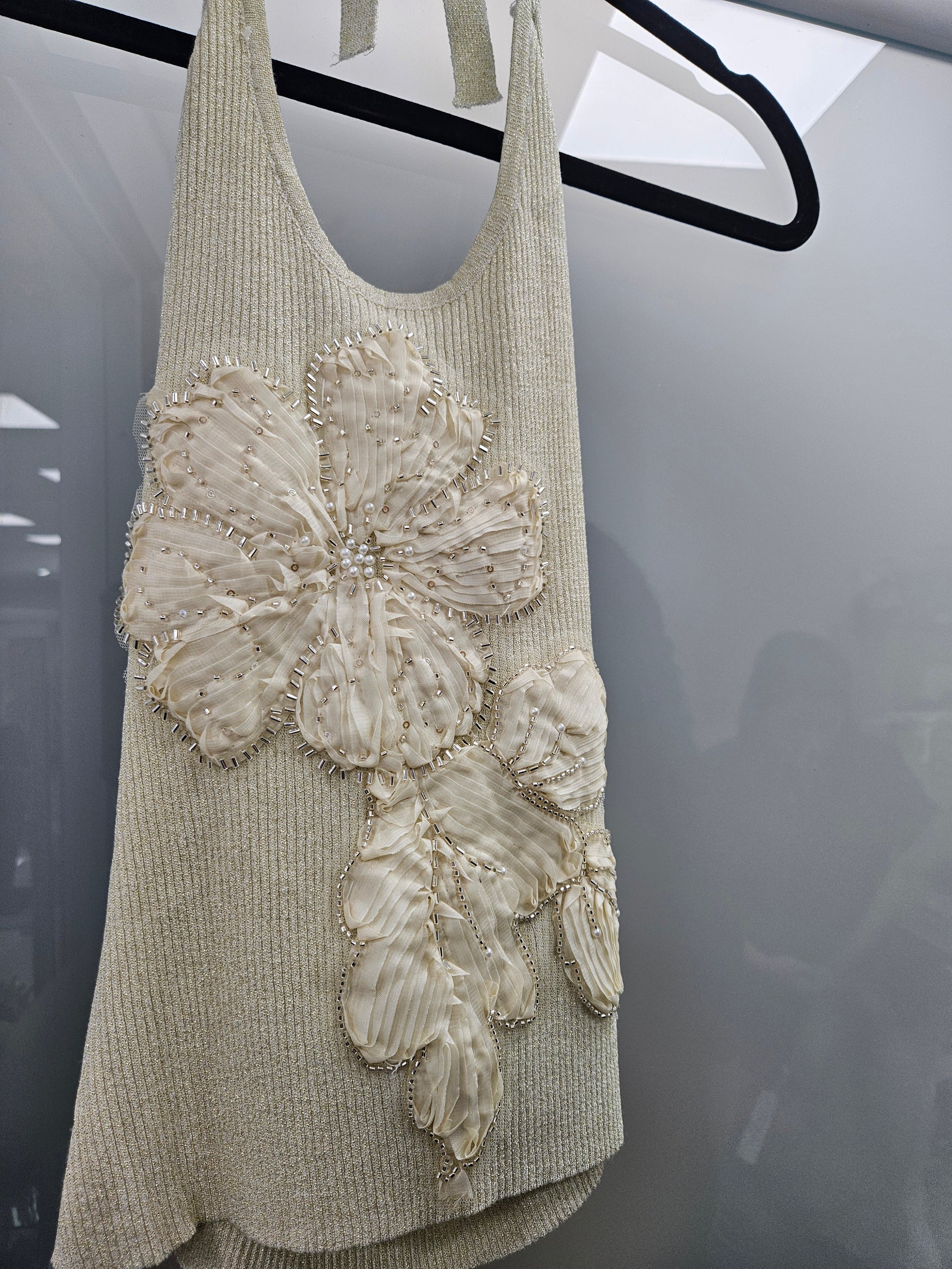 Blusa Chinelyz confeccionada en tela brillosa con spandex que ofrece comodidad y elasticidad. Diseño básico con amarre en el cuello y flores en relieve al frente que añaden un toque elegante. Corte ligeramente corto con la parte superior de la espalda descubierta, perfecto para looks modernos y versátiles. Ideal para cualquier ocasión casual o semi-formal.