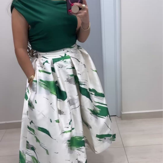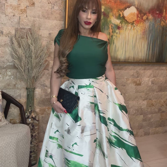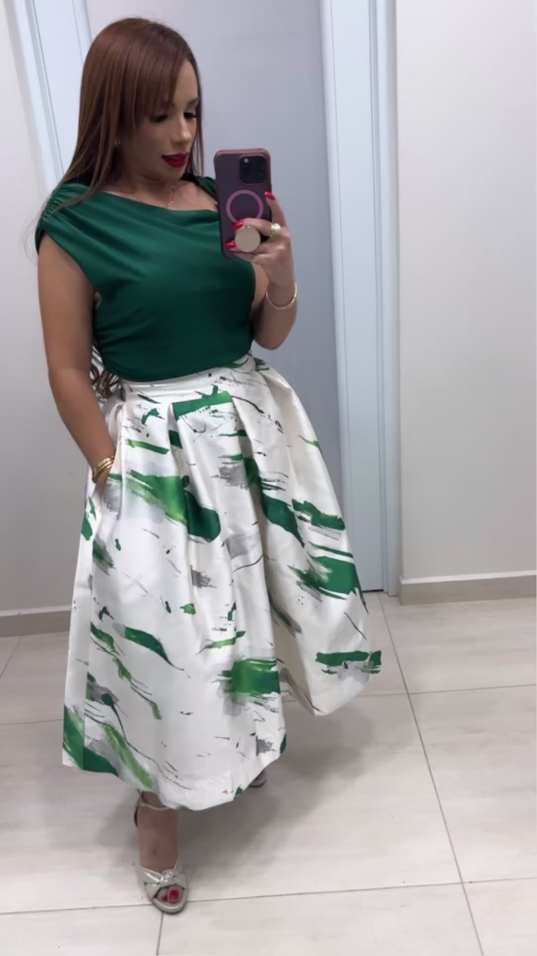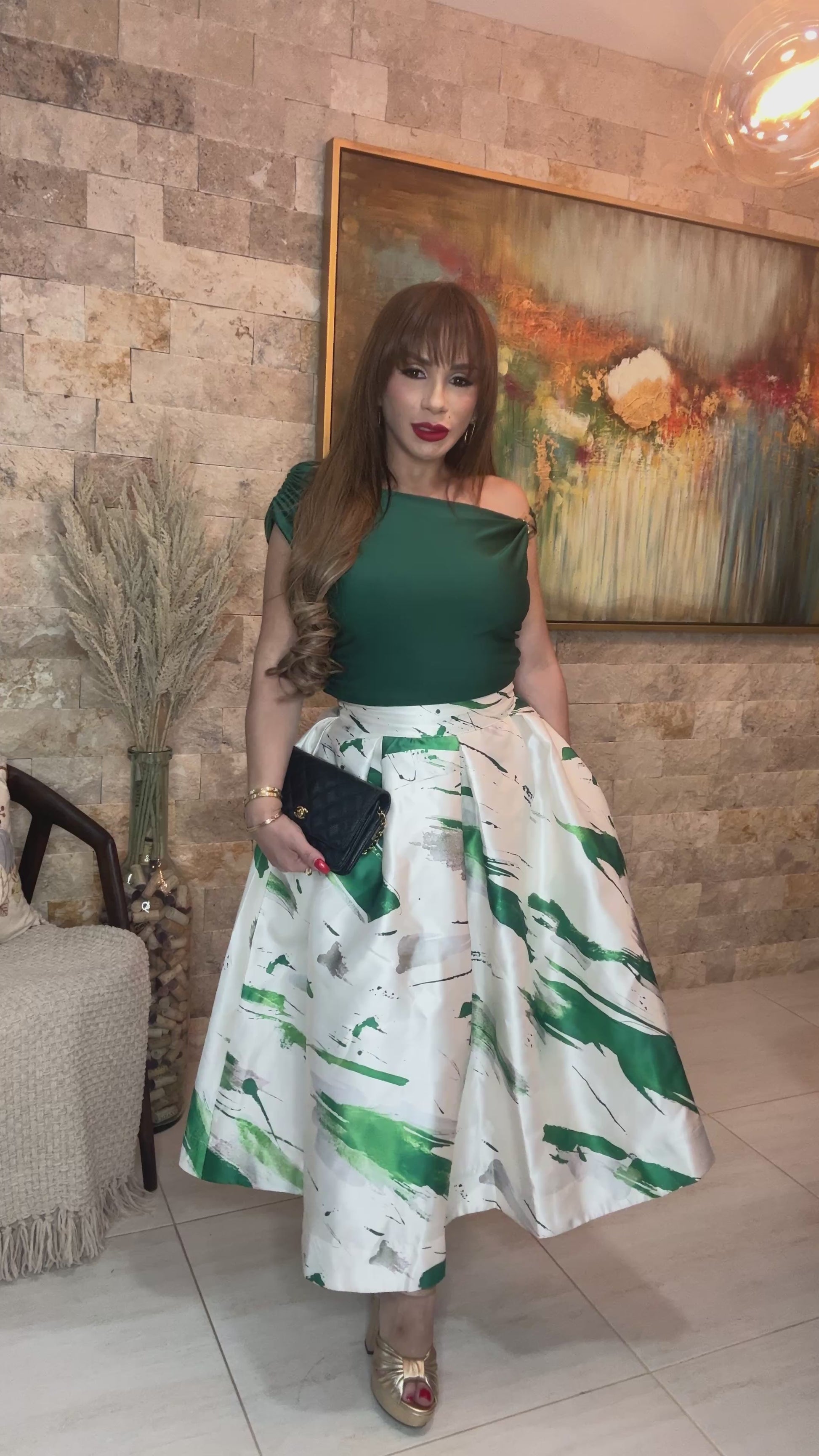 Descubre la falda HILDA, la pieza perfecta para elevar tu estilo con sofisticación. Confeccionada en tela satinada que mantiene su forma impecable, esta falda luce un print exclusivo que captura la atención al instante. Su diseño elegante se adapta tanto a ocasiones especiales como a looks cotidianos refinados. La tela no elástica garantiza un ajuste estructurado que favorece tu silueta, mientras que el acabado satinado añade un toque de lujo a cada movimiento. Una inversión en elegancia que no puede faltar en tu guardarropa.