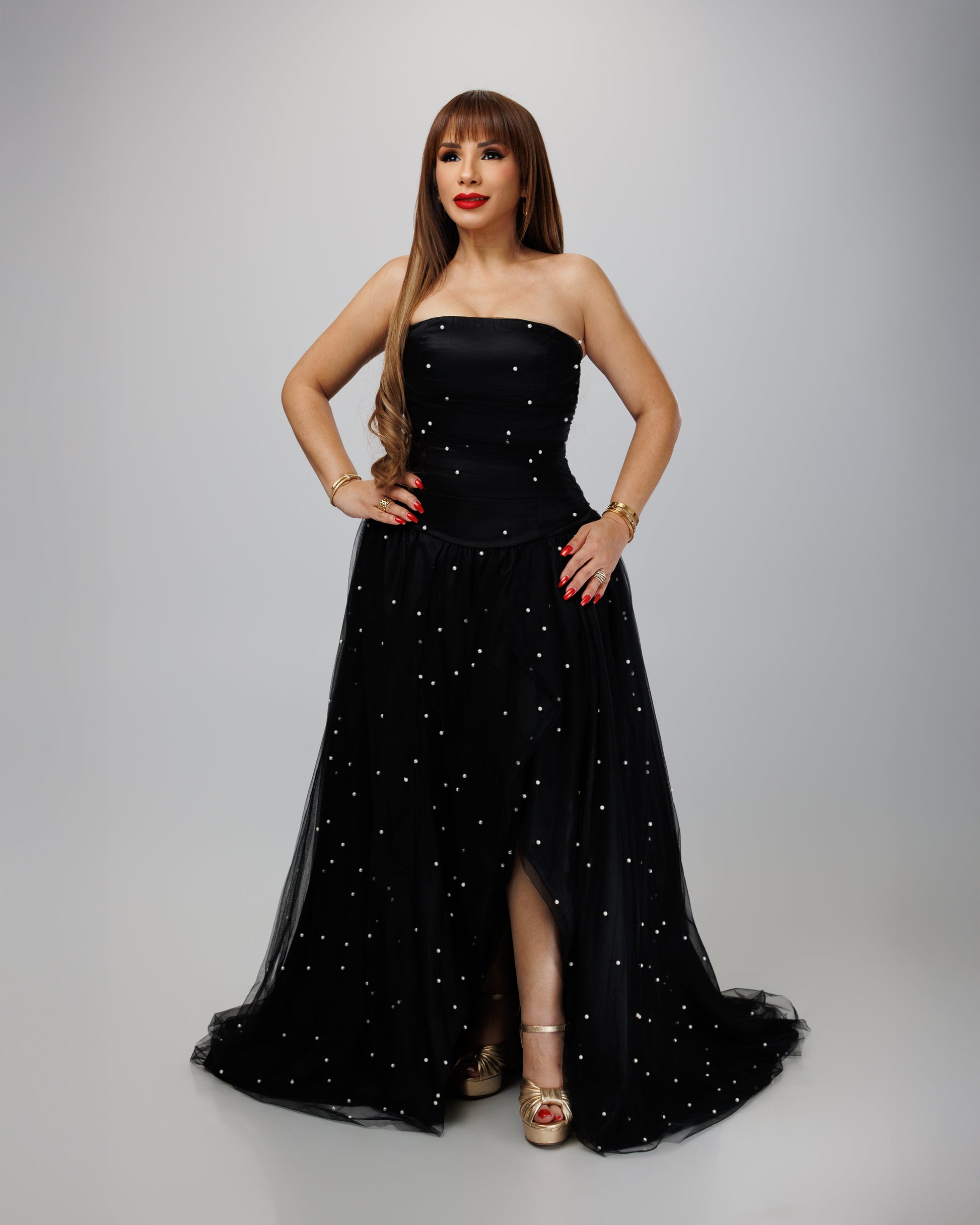 Descubre el vestido OPHELIA, el diseño perfecto para destacar en cualquier ocasión especial. Este elegante modelo sin tirantes presenta un corte estratégico que alarga tu silueta de manera favorecedora. La falda de tul adornada con delicadas perlas crea un efecto deslumbrante, mientras que el cierre trasero con cremallera garantiza un ajuste impecable. Con su corte corto al frente y largo atrás, logra un look sofisticado y moderno. La tela fluida se ajusta perfectamente a tu talla, brindándote comodidad y confianza en cada movimiento.