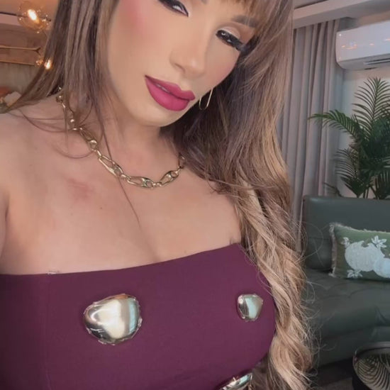 This strapless RAILY Jumpsuit features elegant golden details on the top, adding a touch of sophistication to your look. Crafted from stretchy spandex, it ensures a comfortable and flattering fit. The back zipper provides easy wear and a sleek silhouette, making it perfect for stylish occasions.