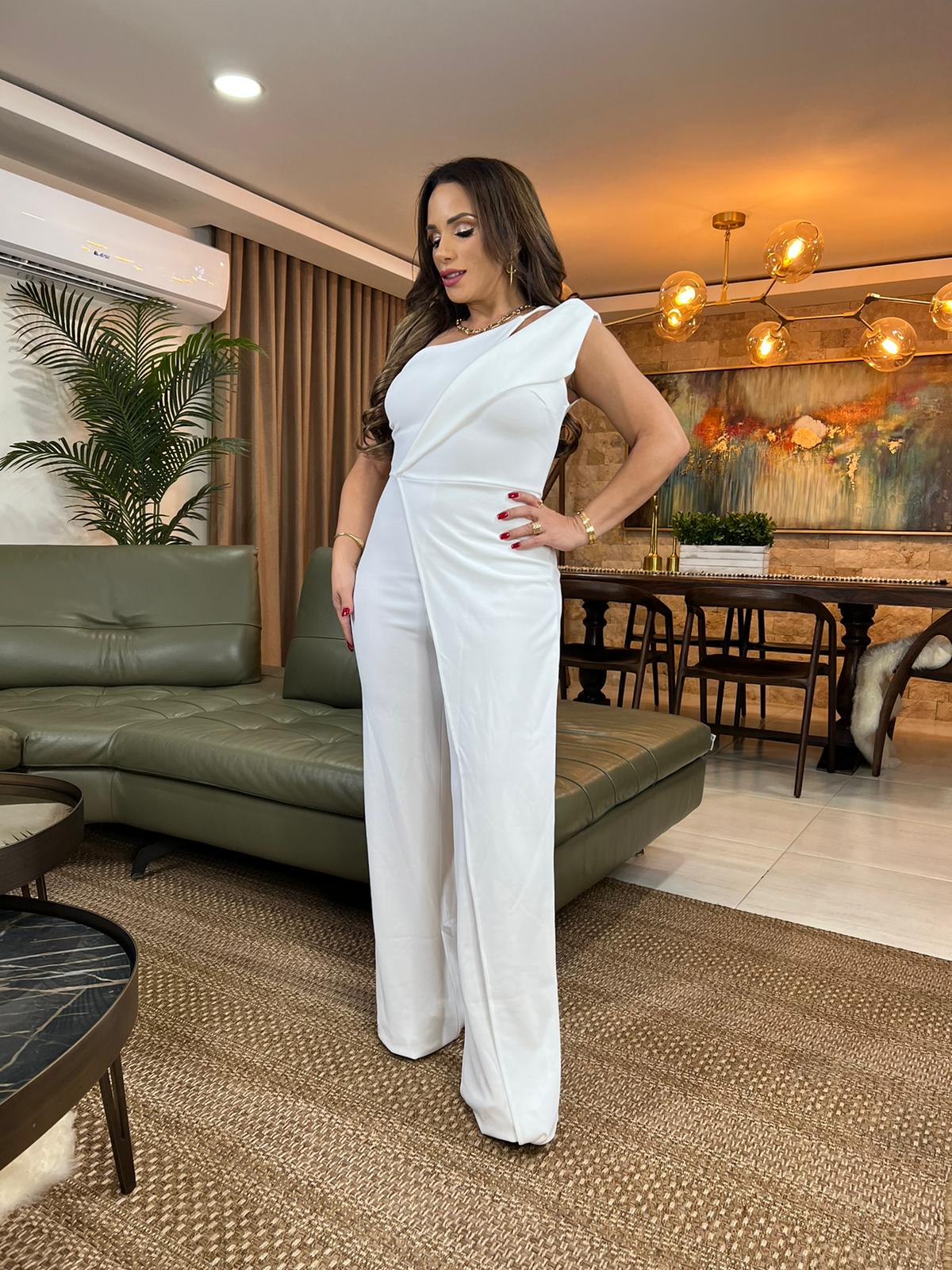 Elevate your style with the Sandra One Shoulder Jumpsuit, crafted from comfortable spandex for a flattering fit. Featuring a chic one-shoulder design and wide palazzo legs, this jumpsuit combines elegance and ease. A discreet zipper at the back ensures effortless wear while maintaining a sleek silhouette. Perfect for any occasion where you want to stand out with confidence and grace.
